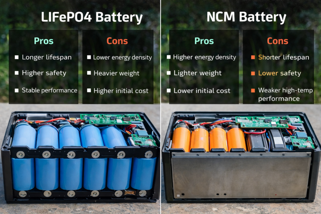 | Feature | LiFePO4 (Recommended) | NCM | Lead-Acid |